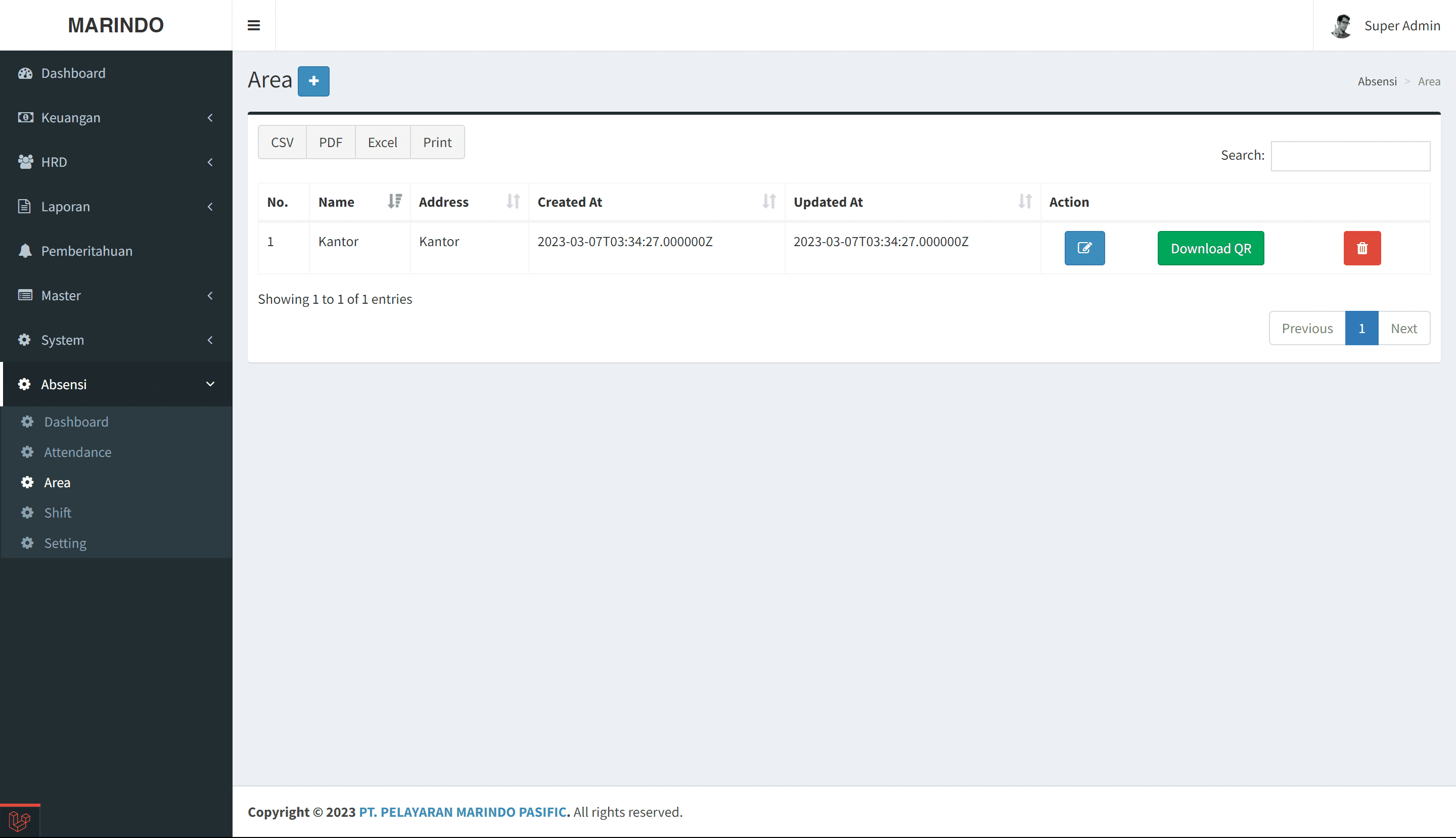 Pada halaman attedance admin juga bisa mengexport data attendance yang ada ke CSV, PDF, Excel, Print