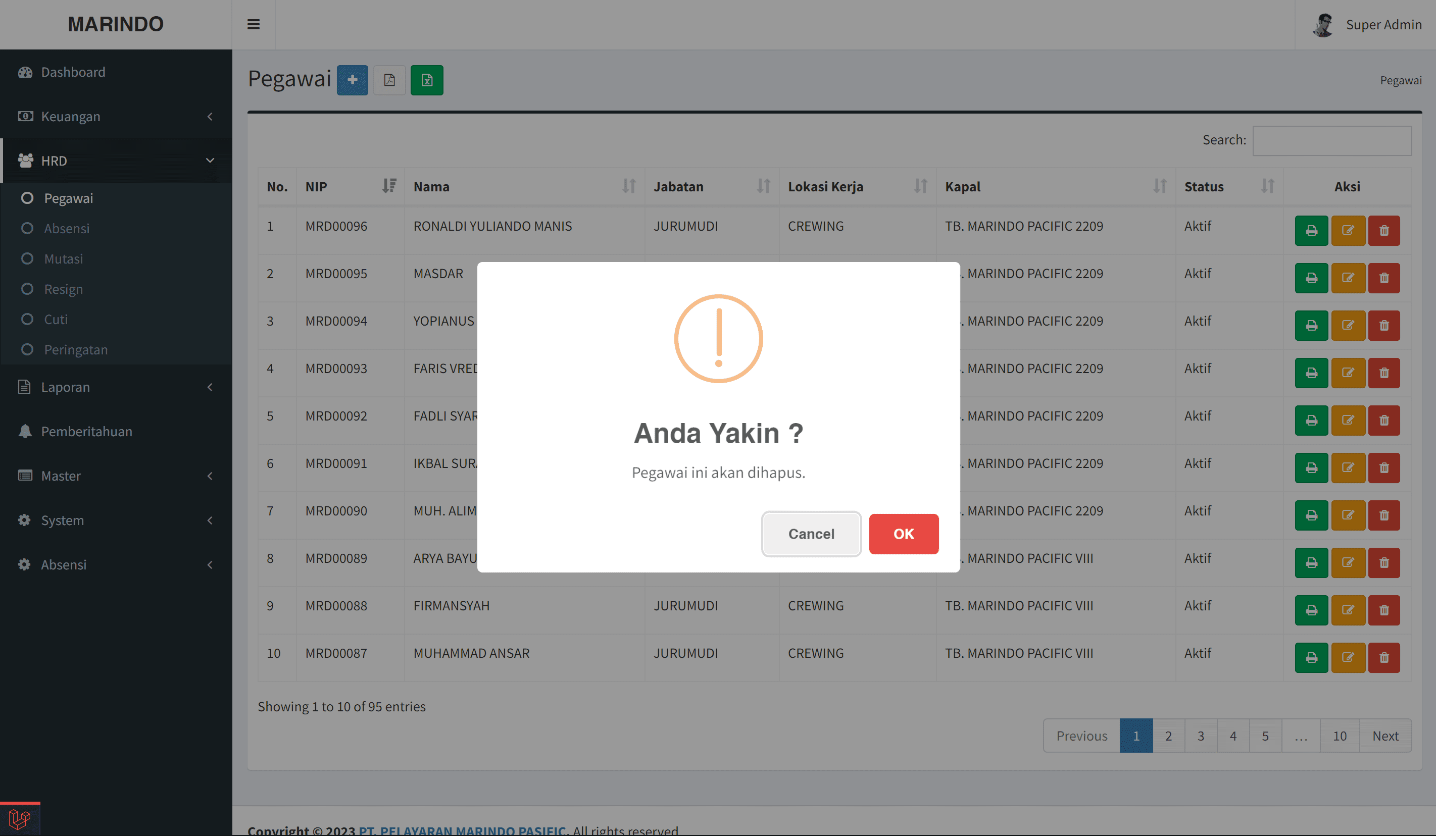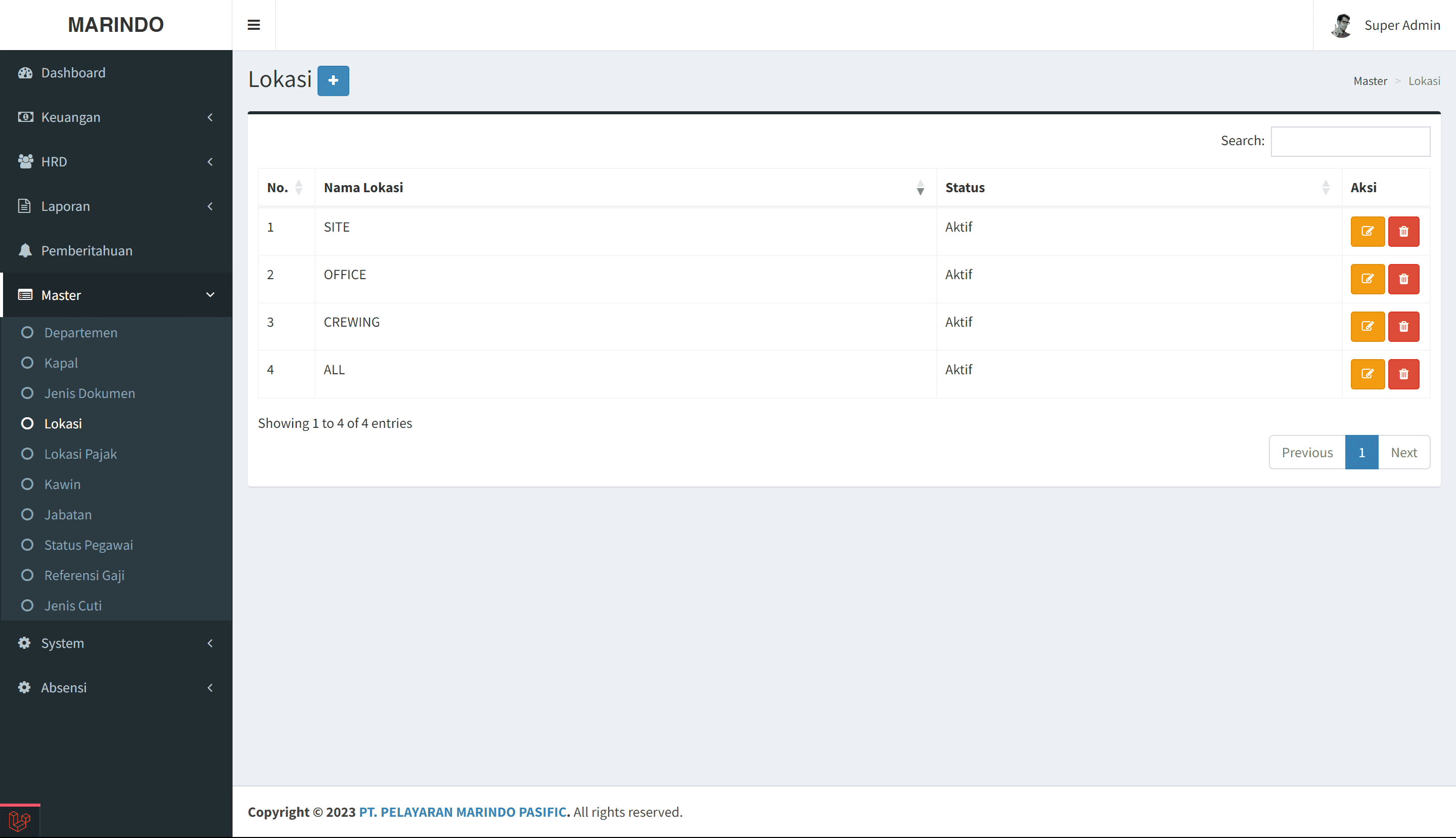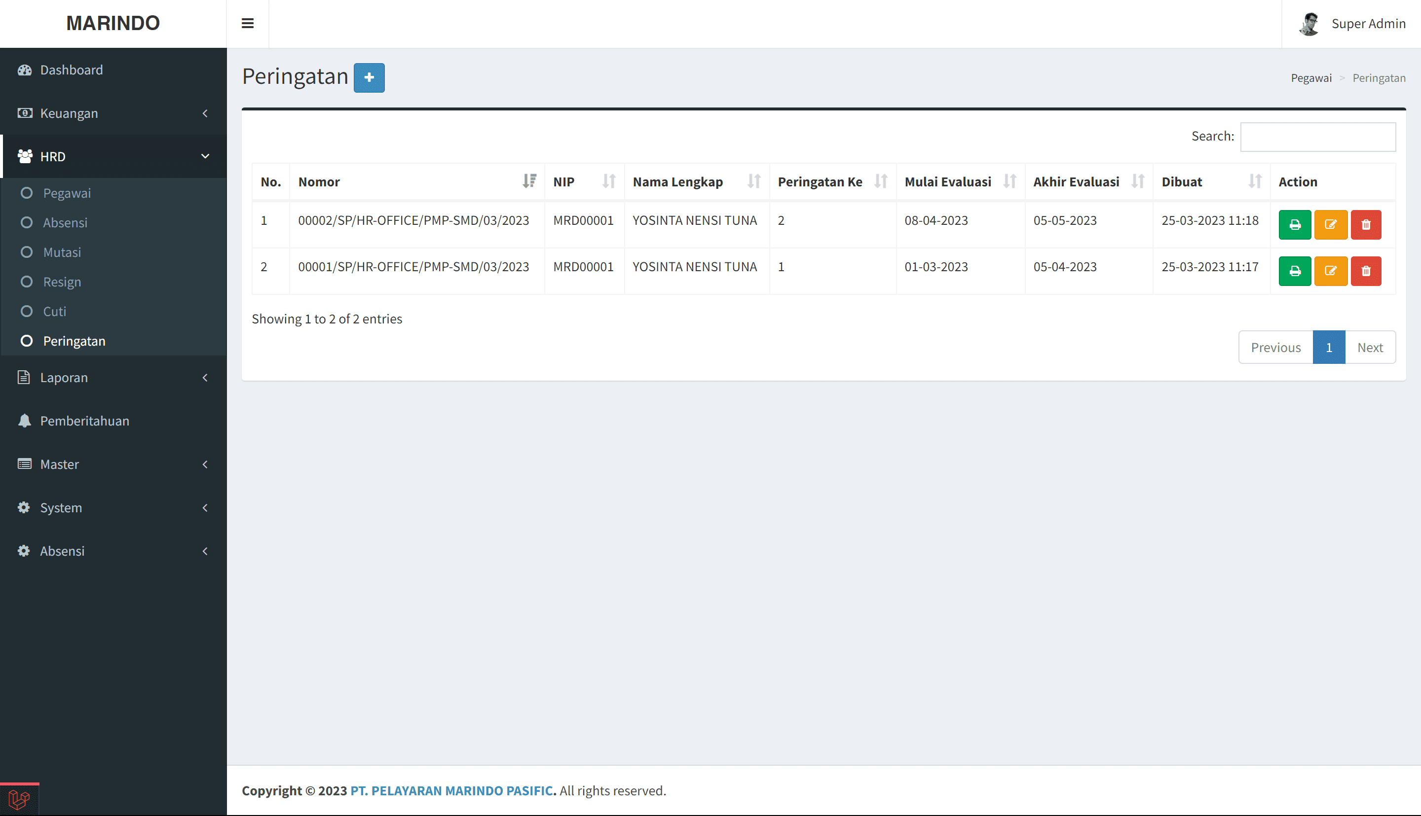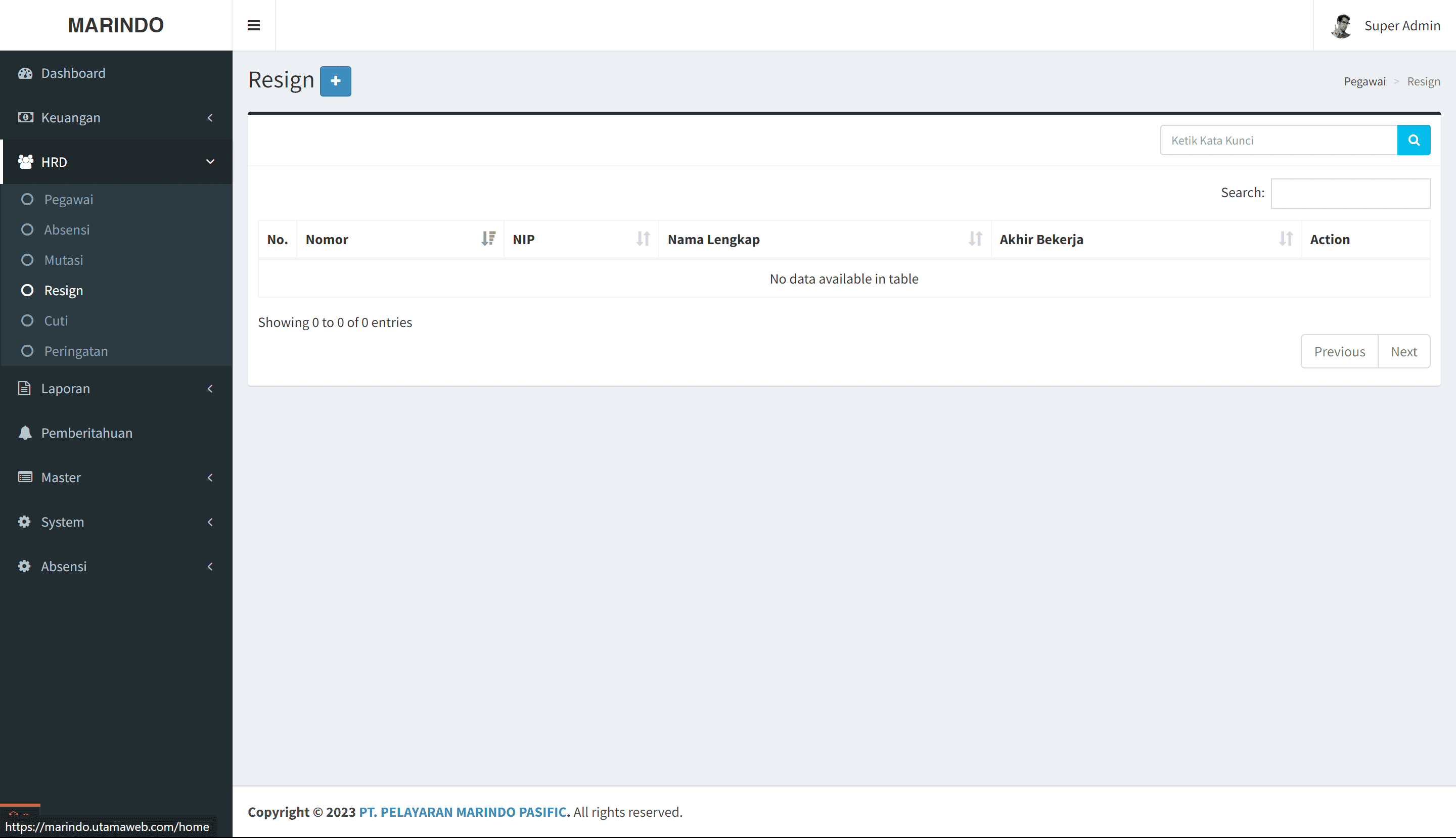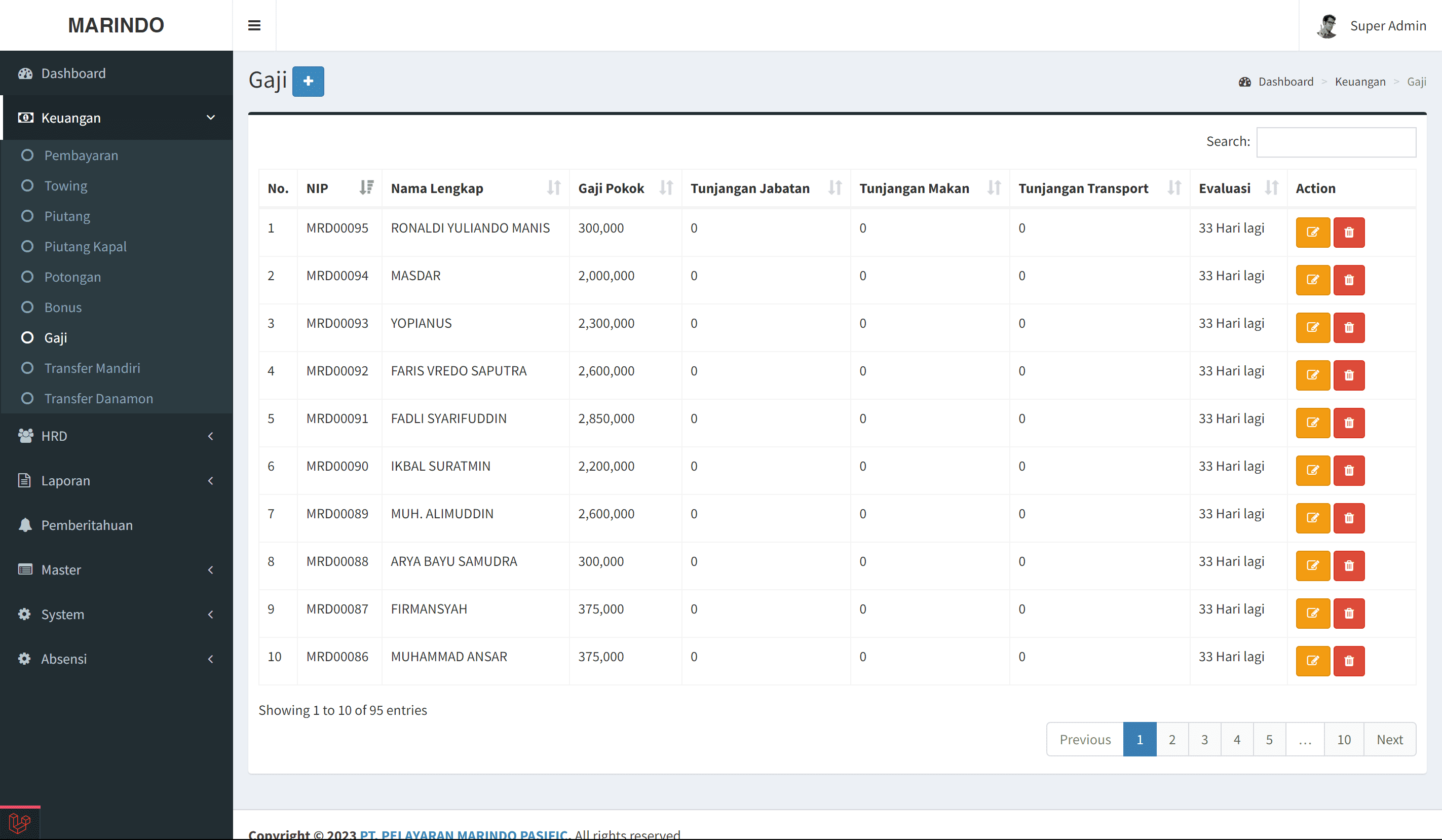 Modul pegawai berisi data-data pegawai yang terdapat di marindo :