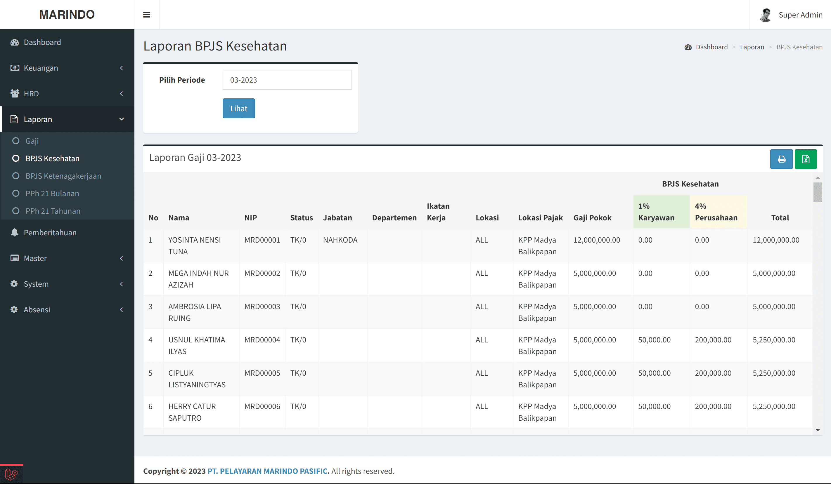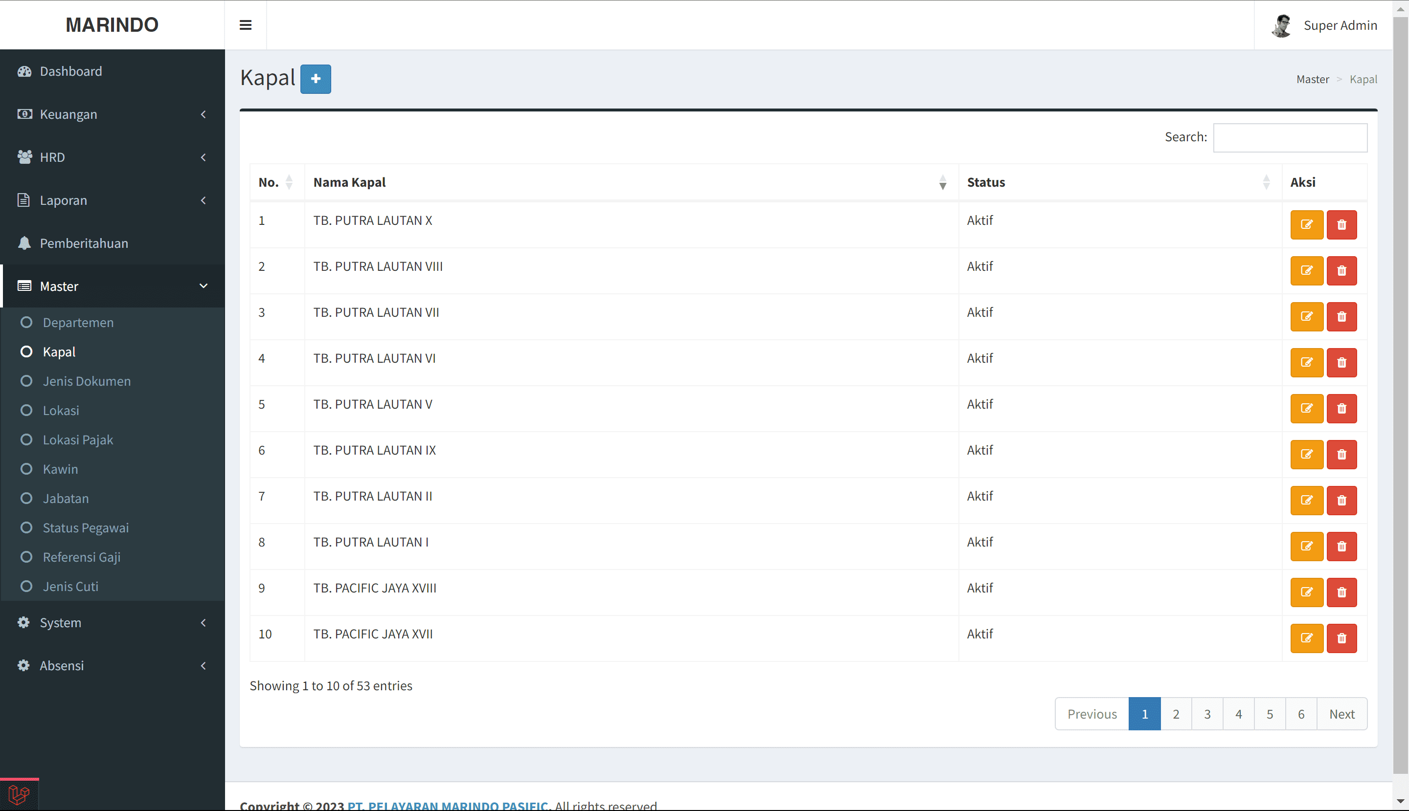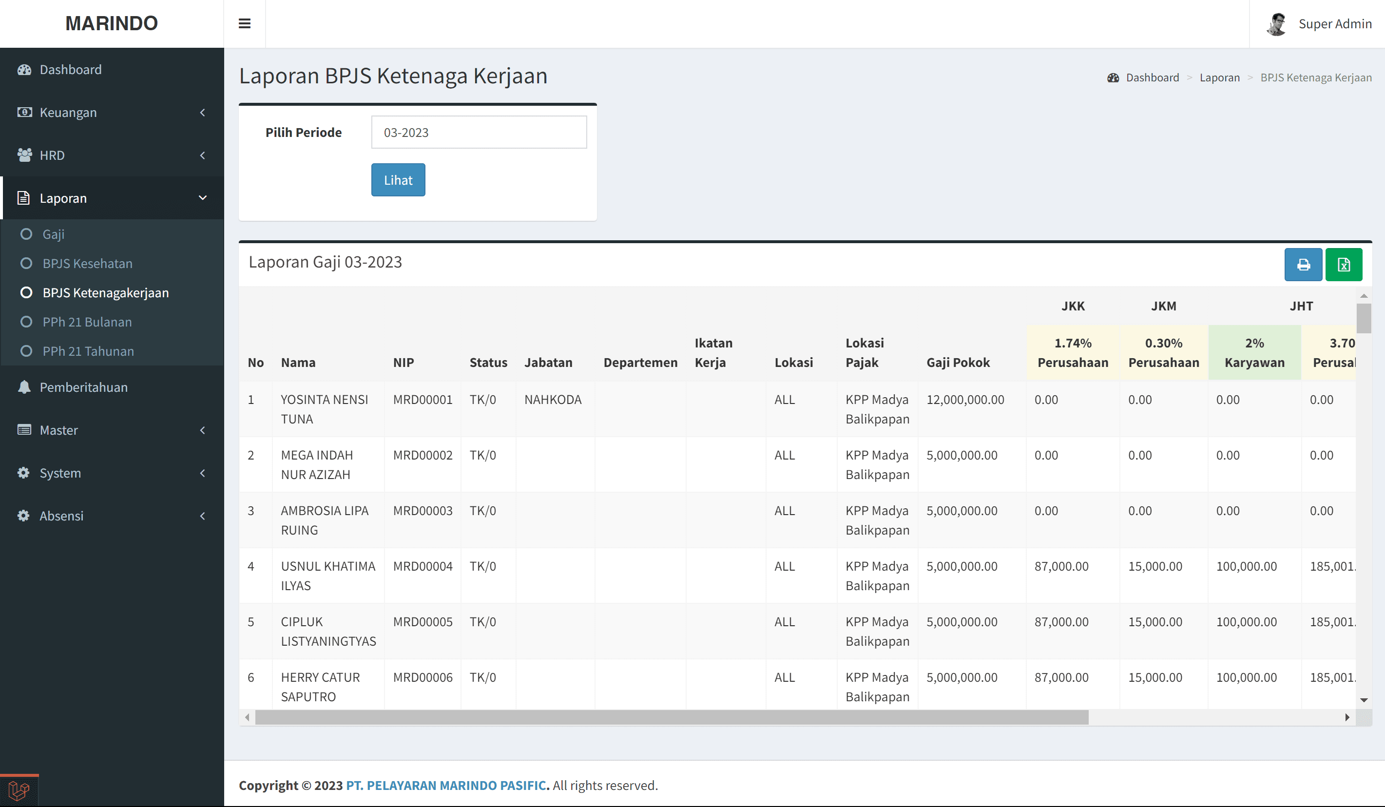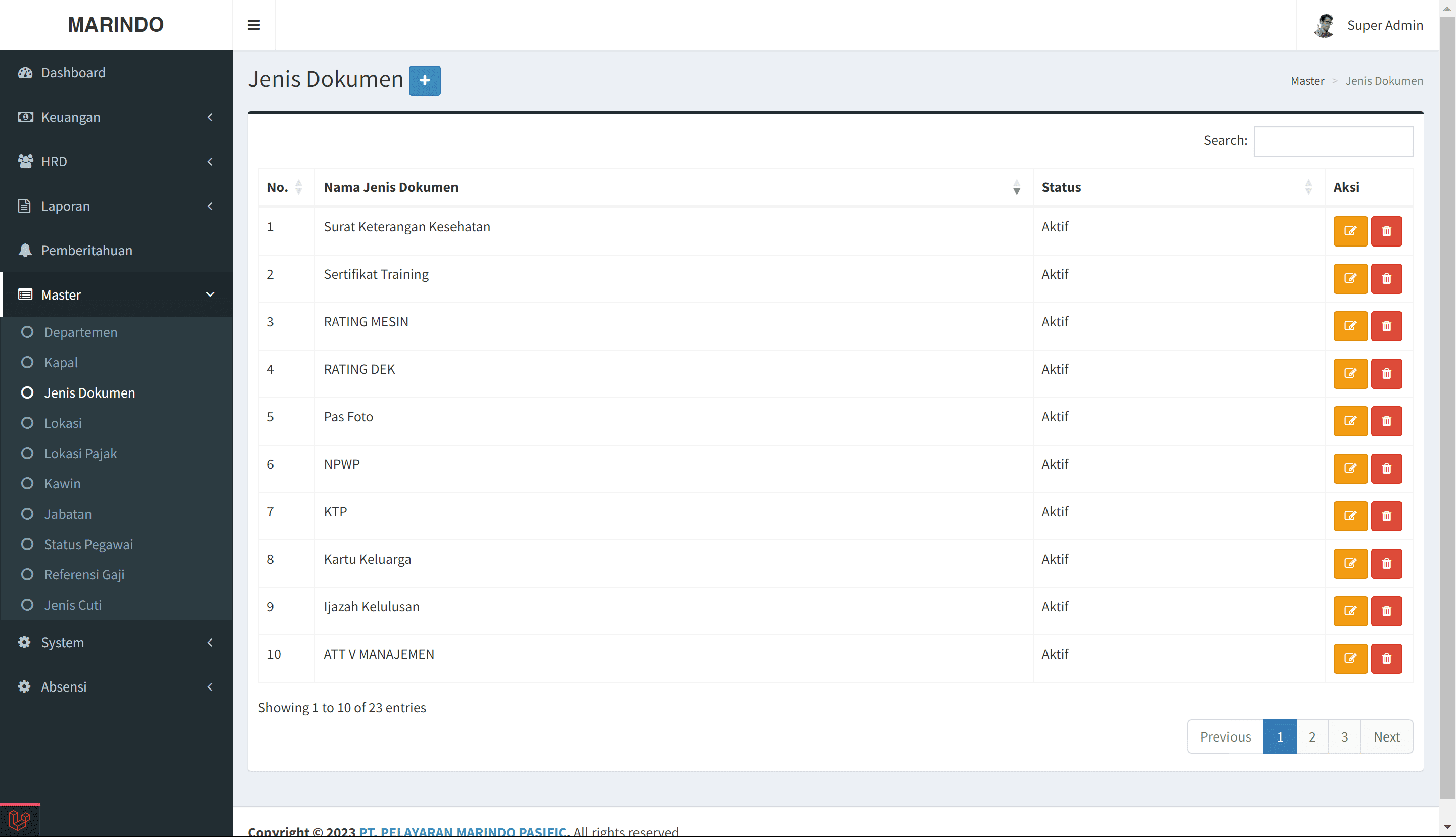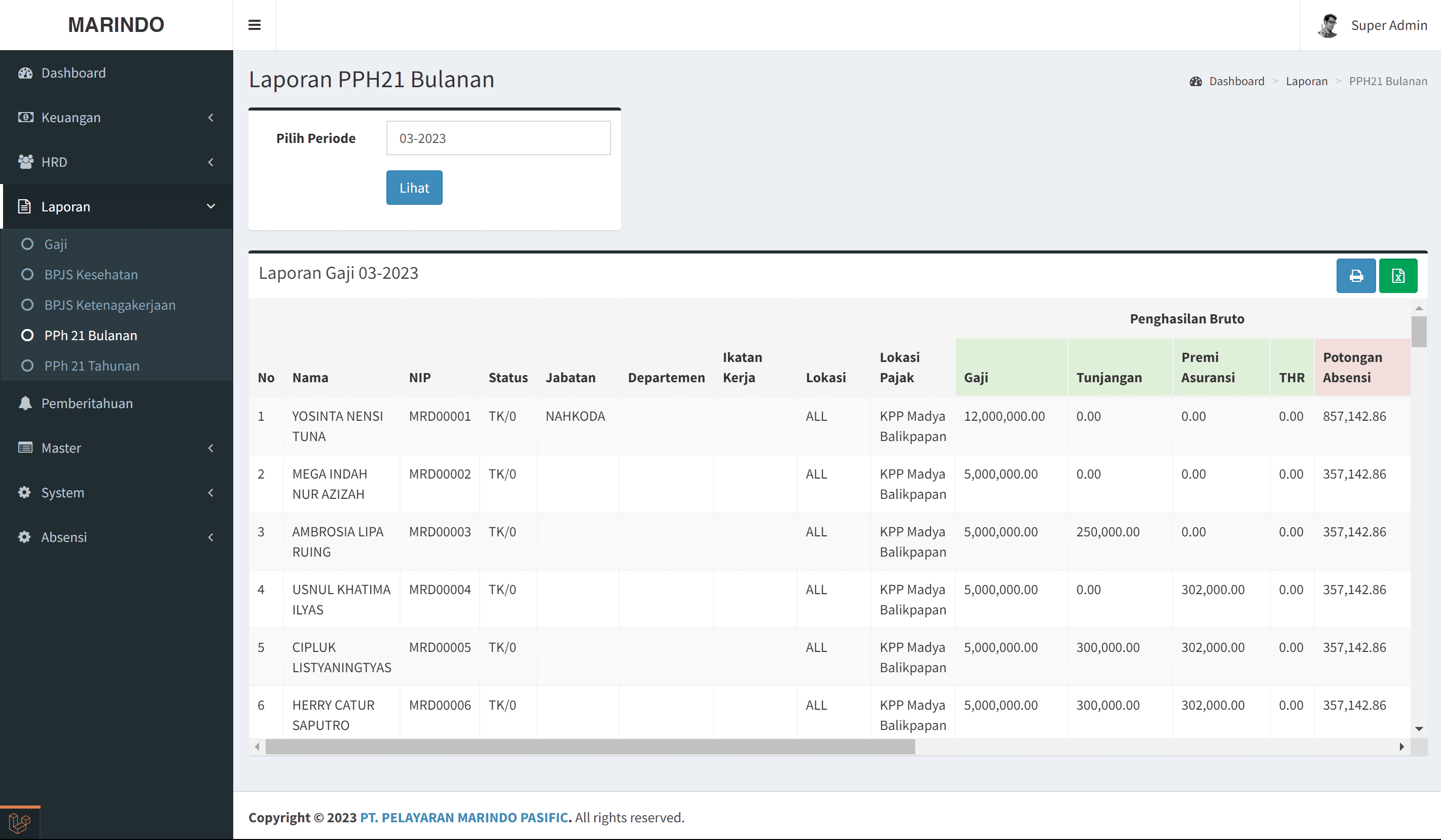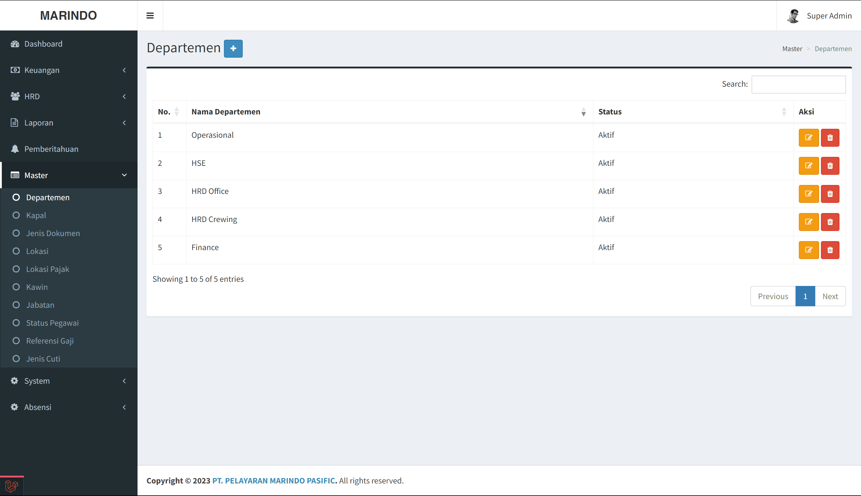Modul pegawai berisi data-data pegawai yang terdapat di marindo :