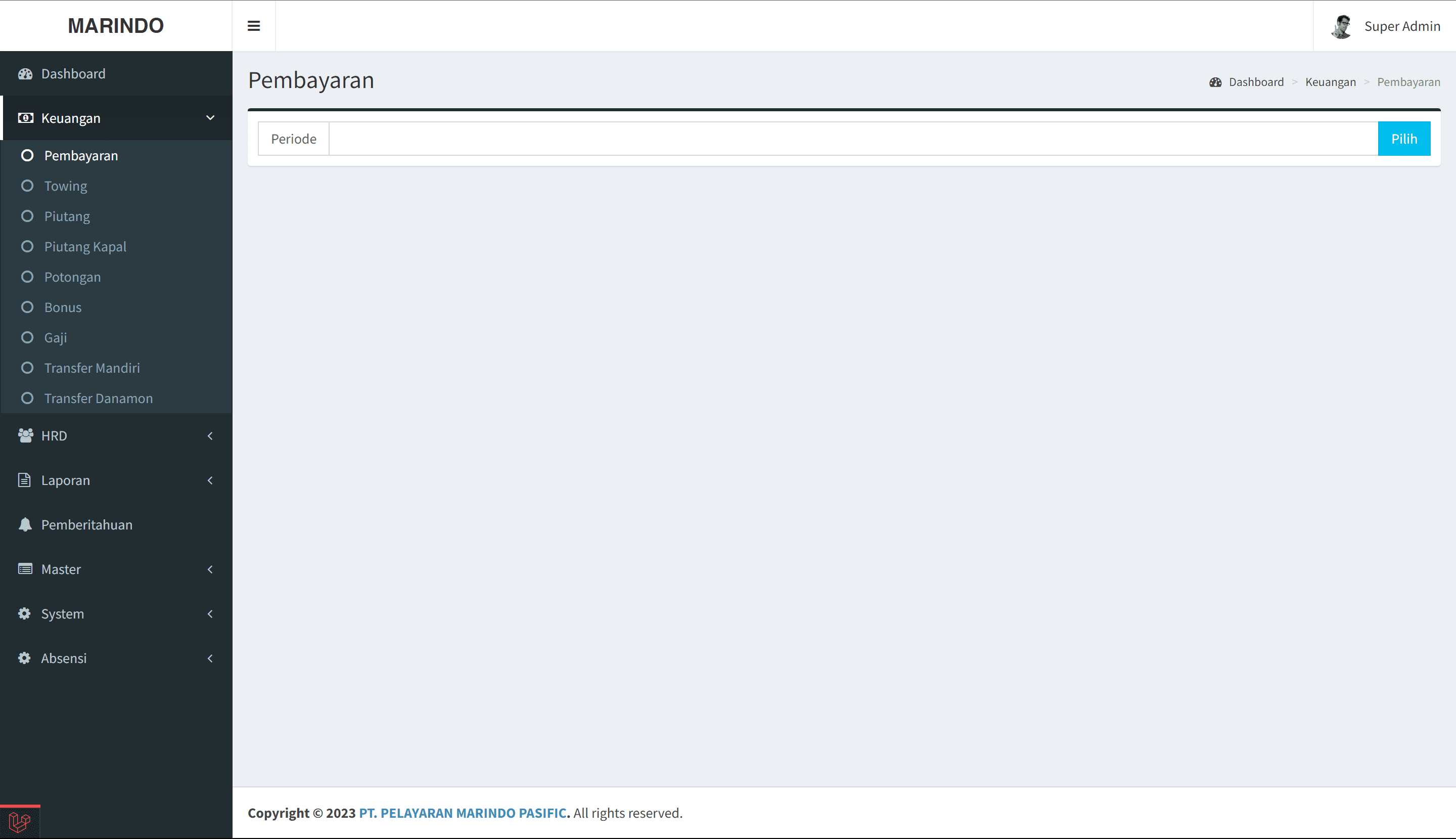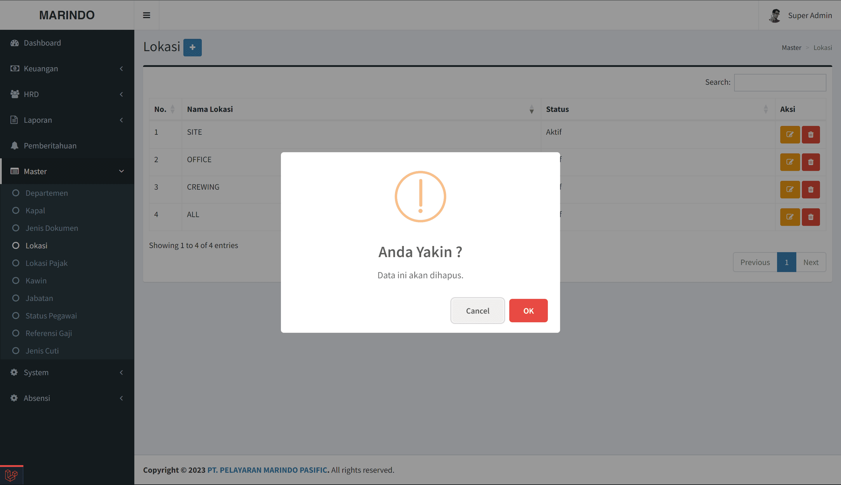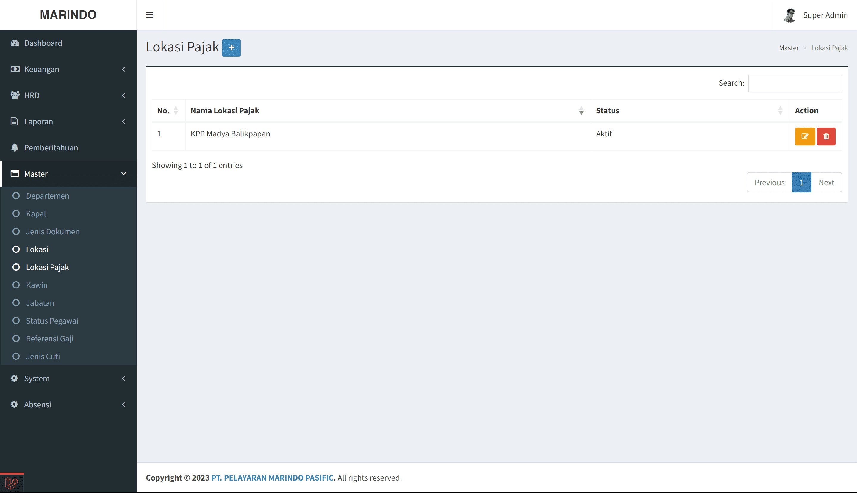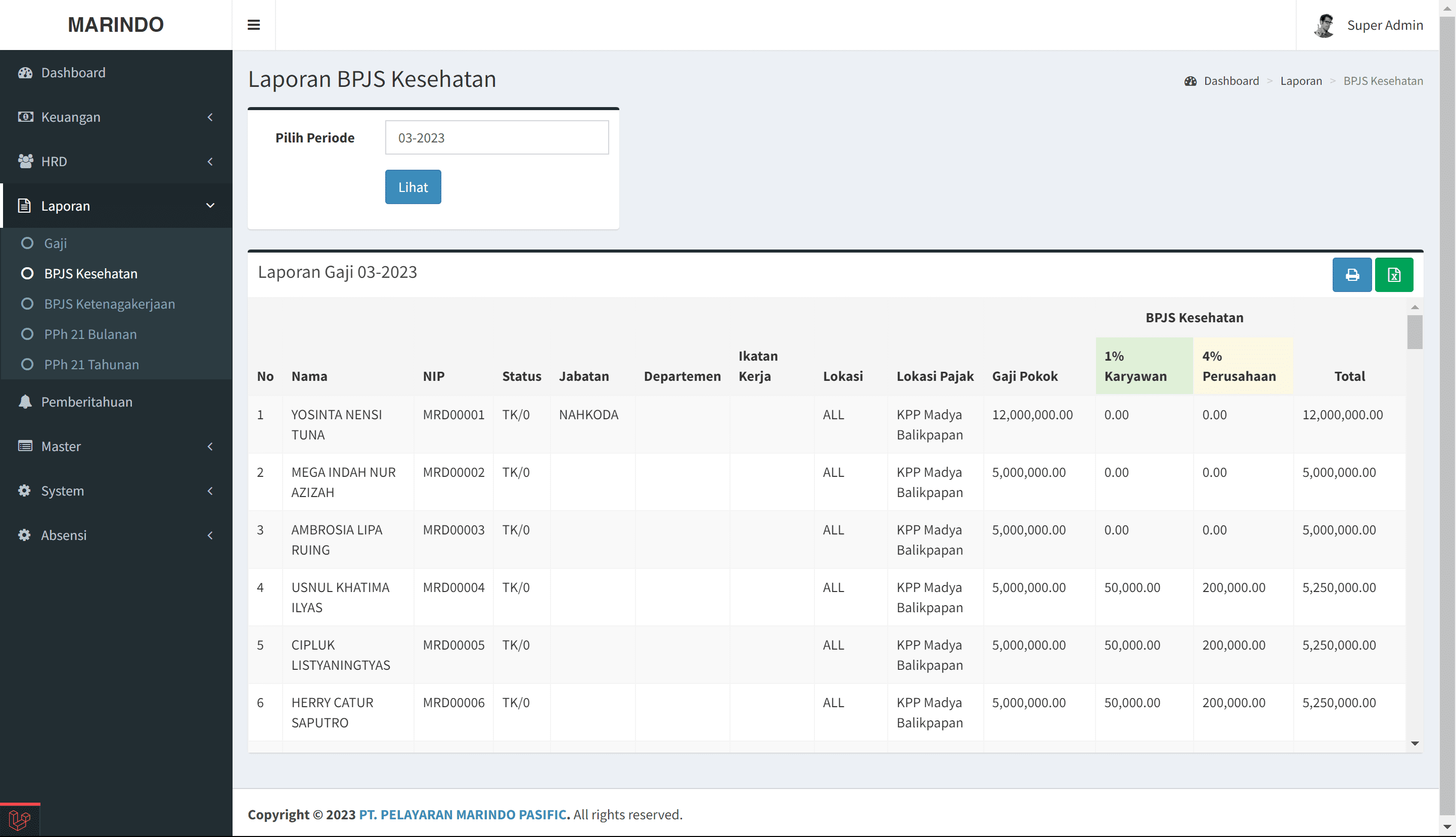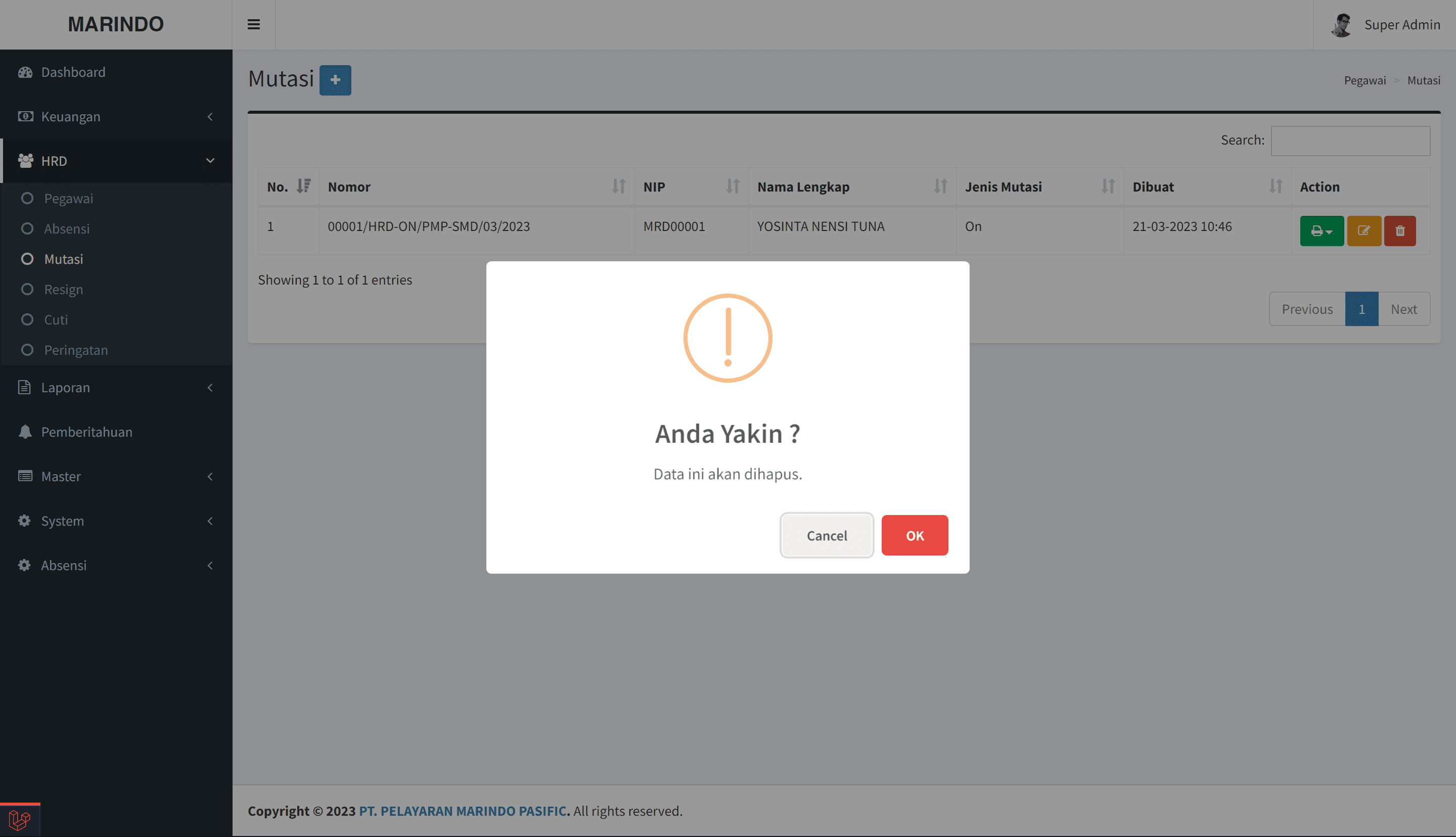 Modul pegawai berisi data-data pegawai yang terdapat di marindo :