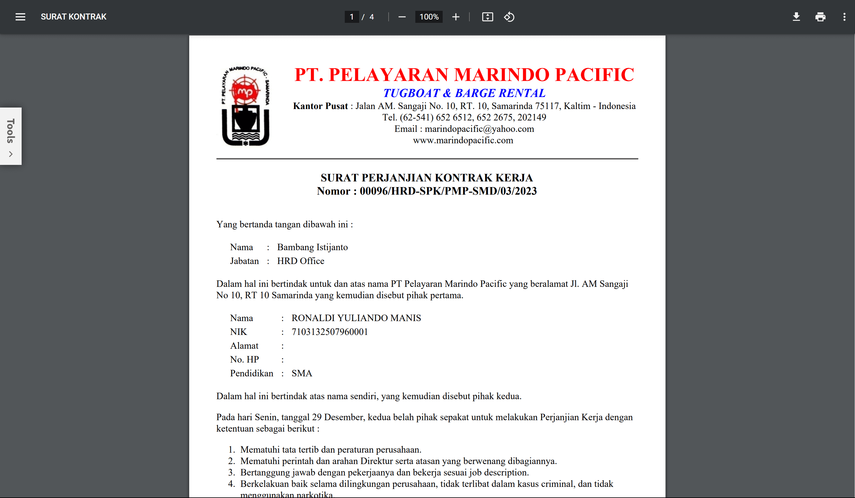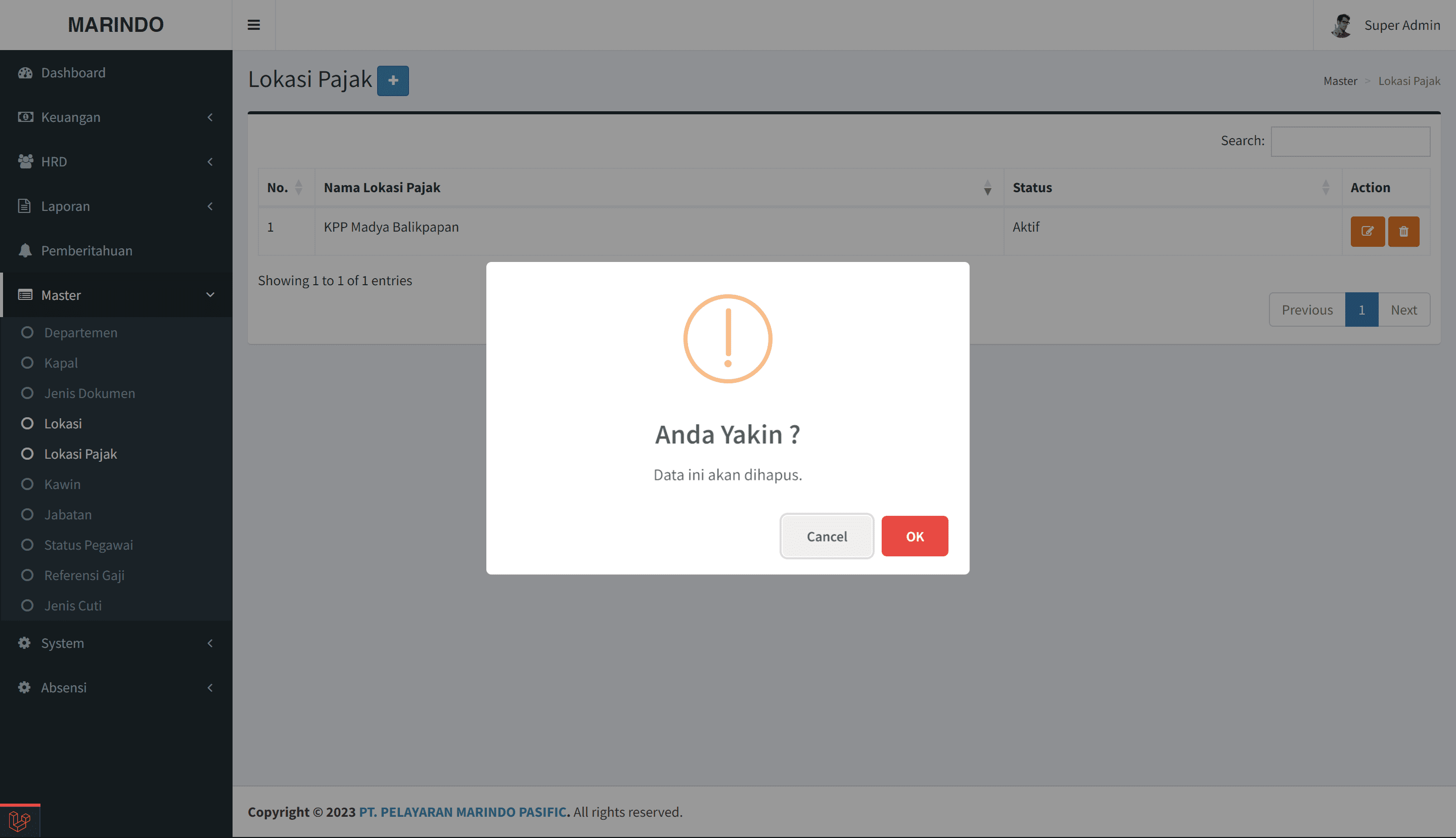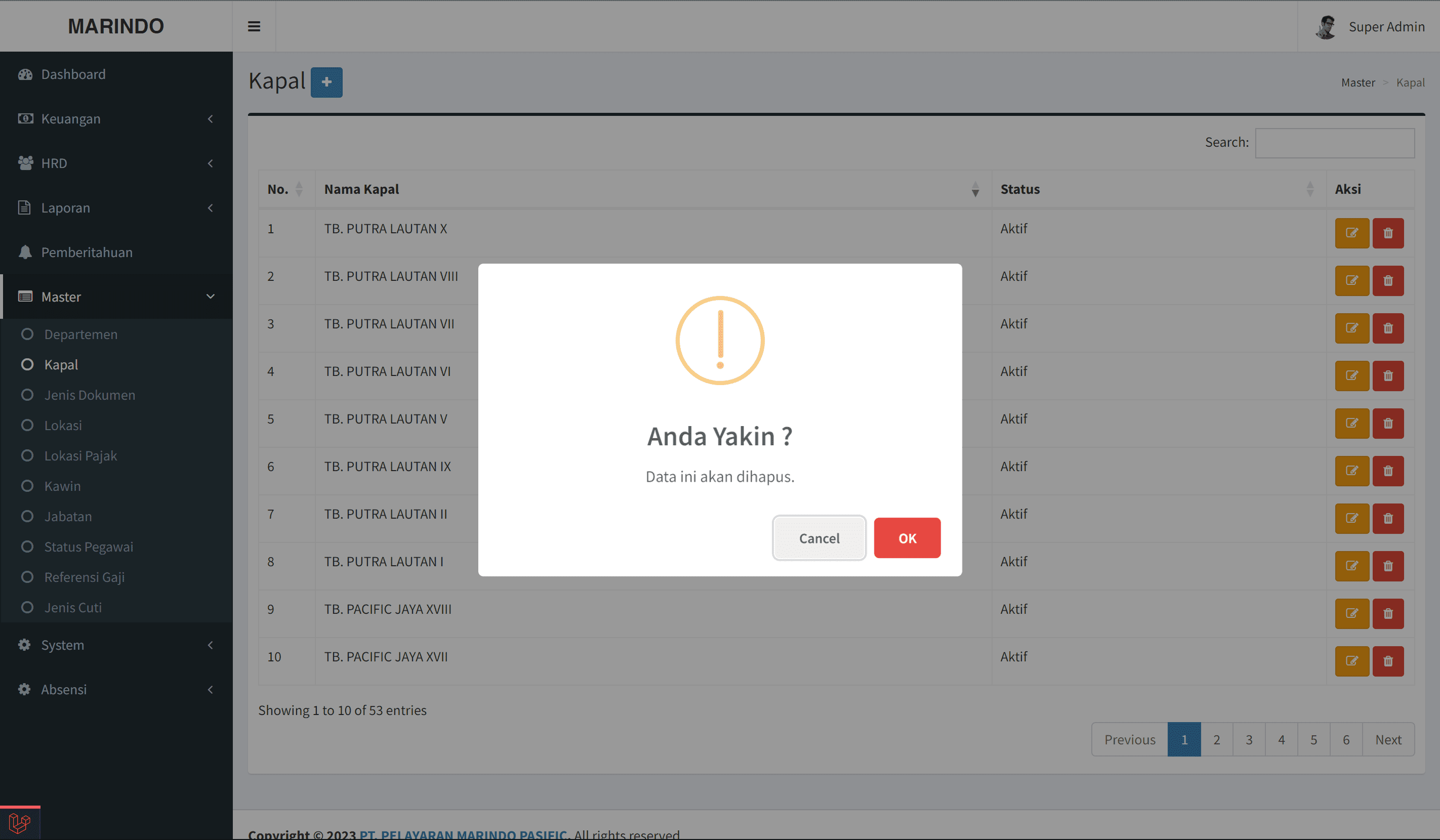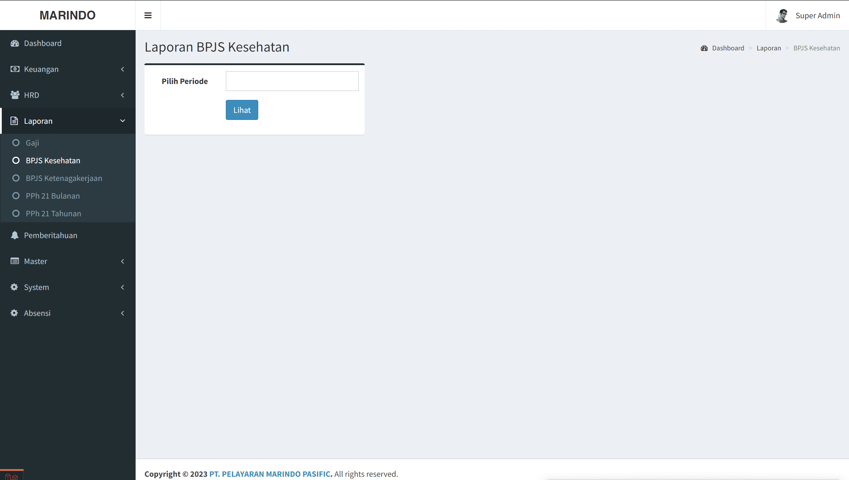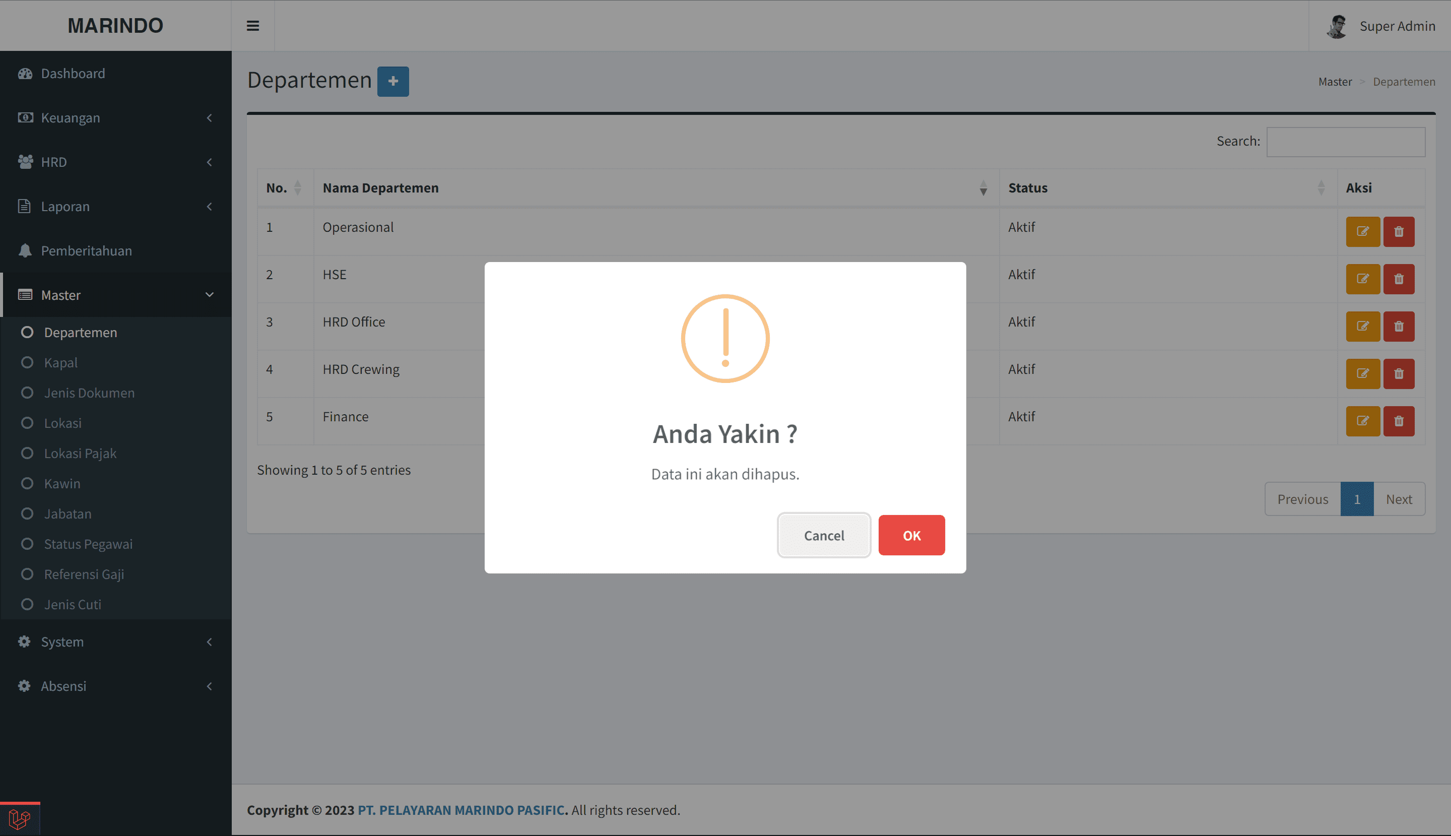 Modul pegawai berisi data-data pegawai yang terdapat di marindo :