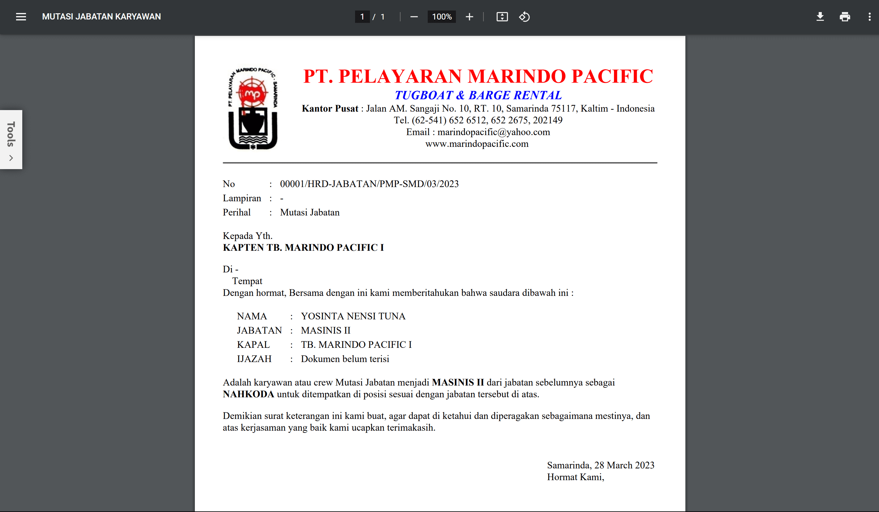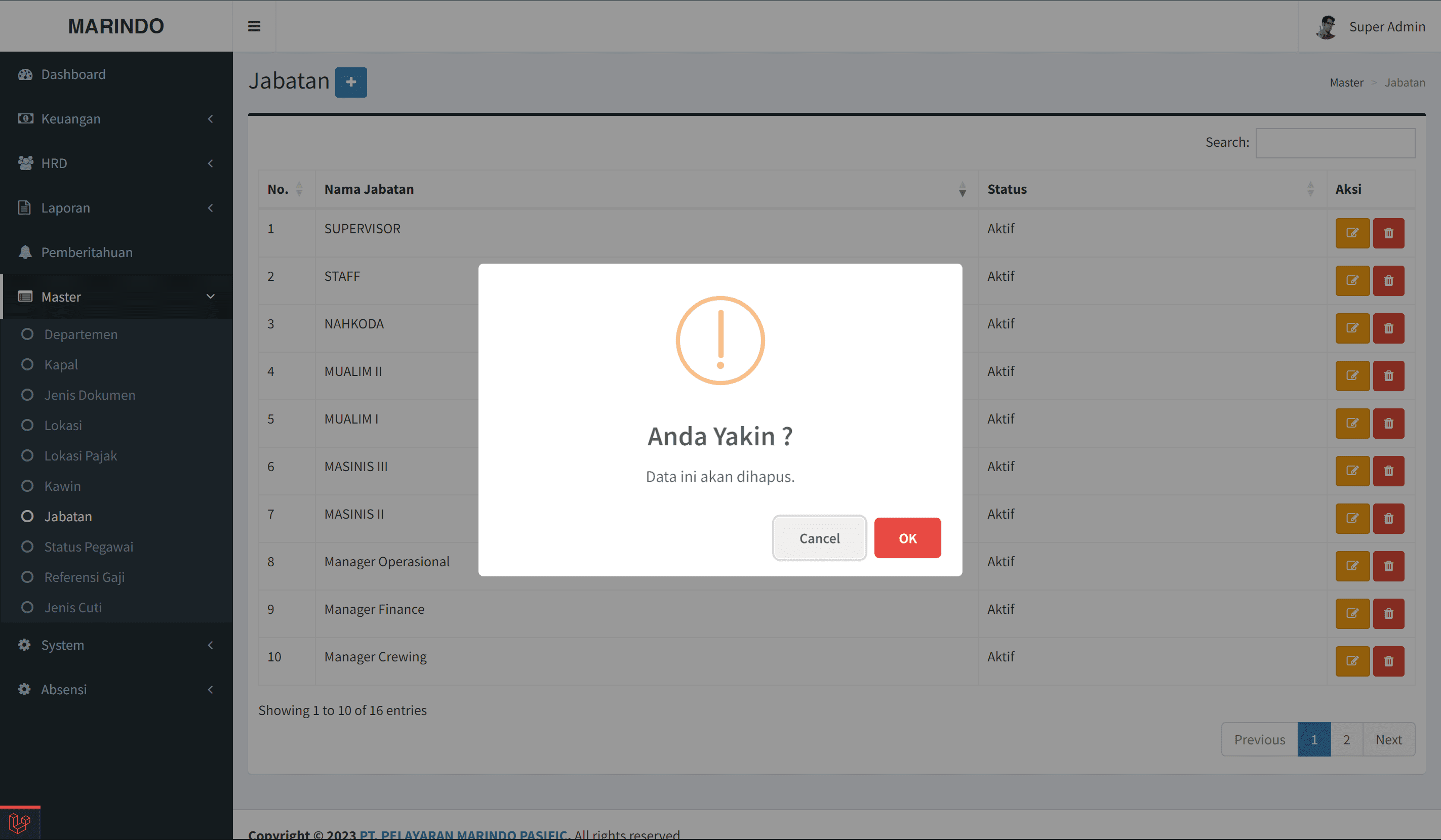 Modul jabatan berisi data-data jabatan yang terdapat di marindo :