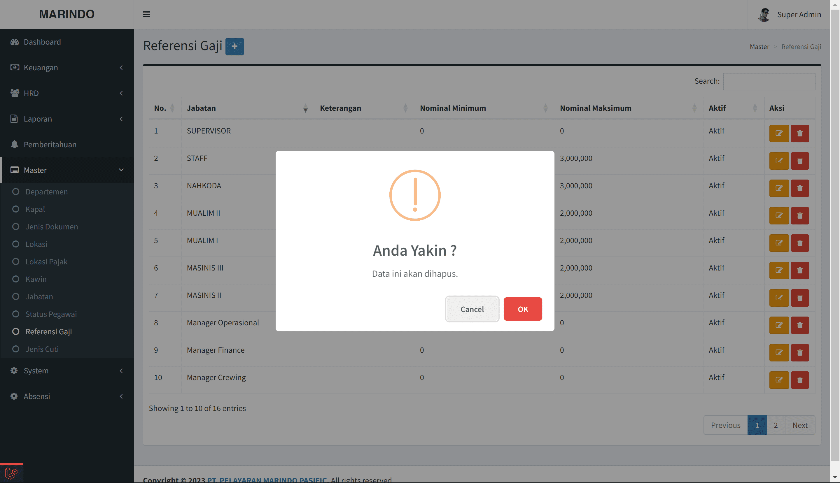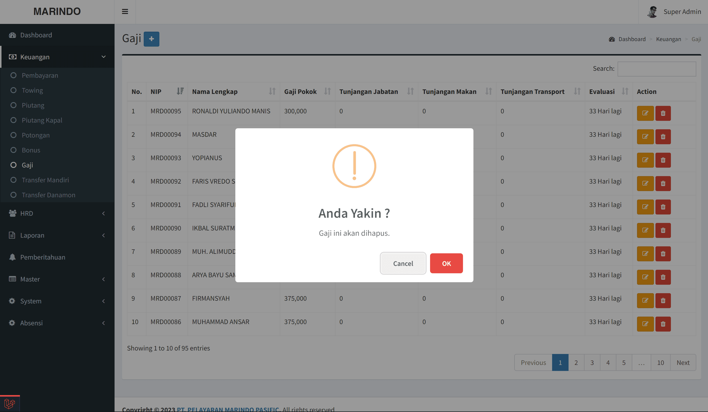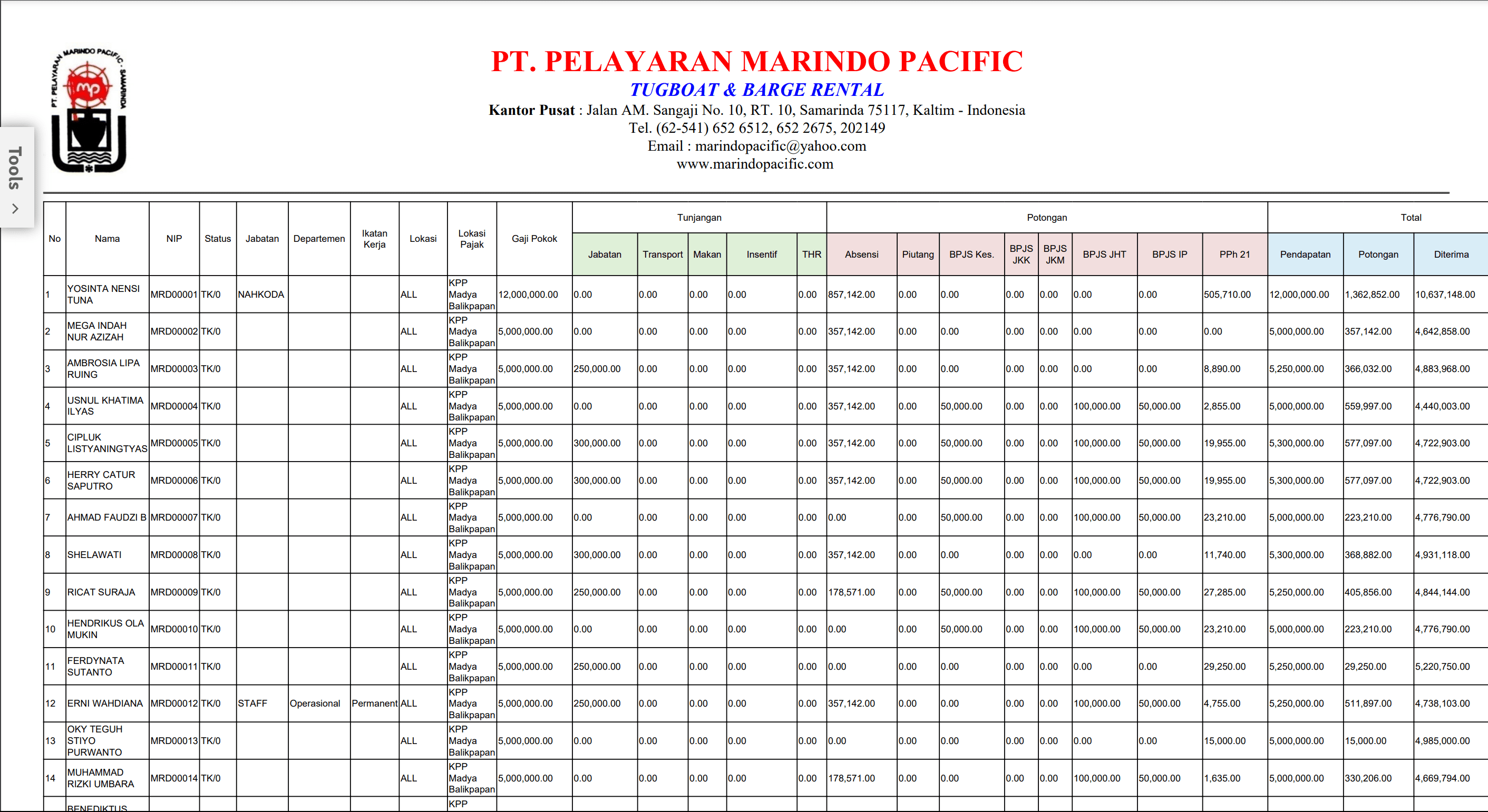 Modul gaji berisi data-data gaji karyawan yang terdapat di marindo :