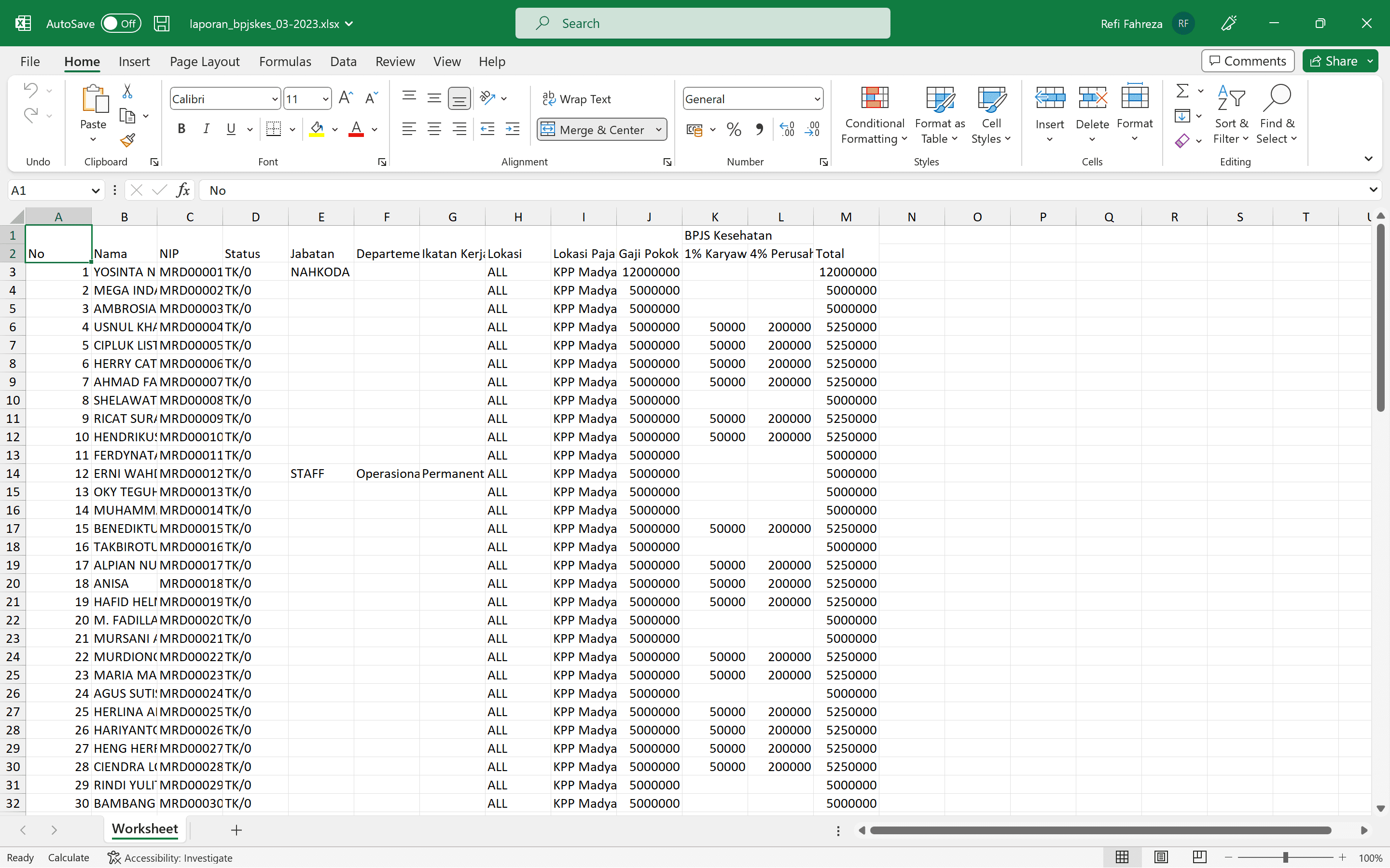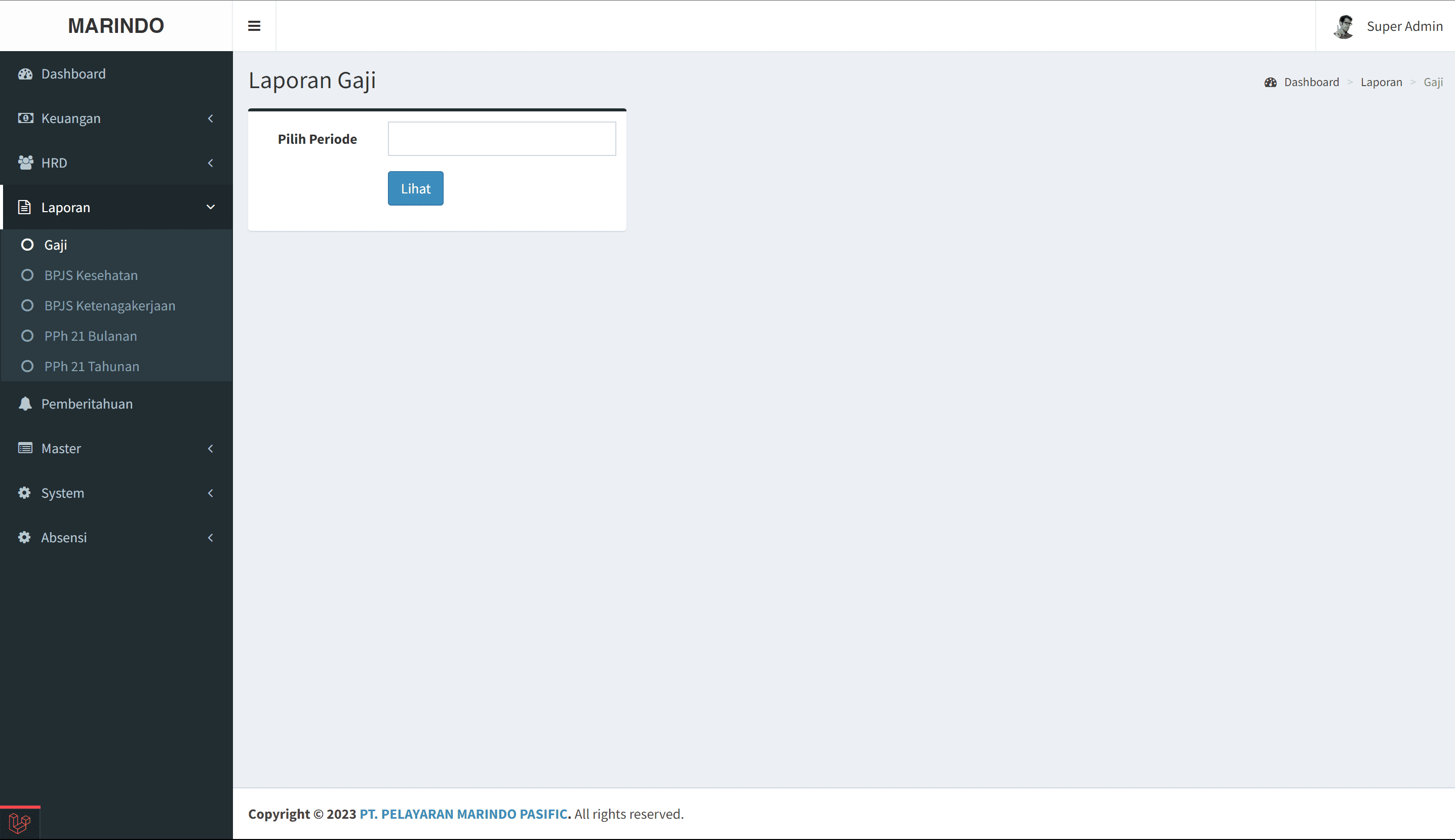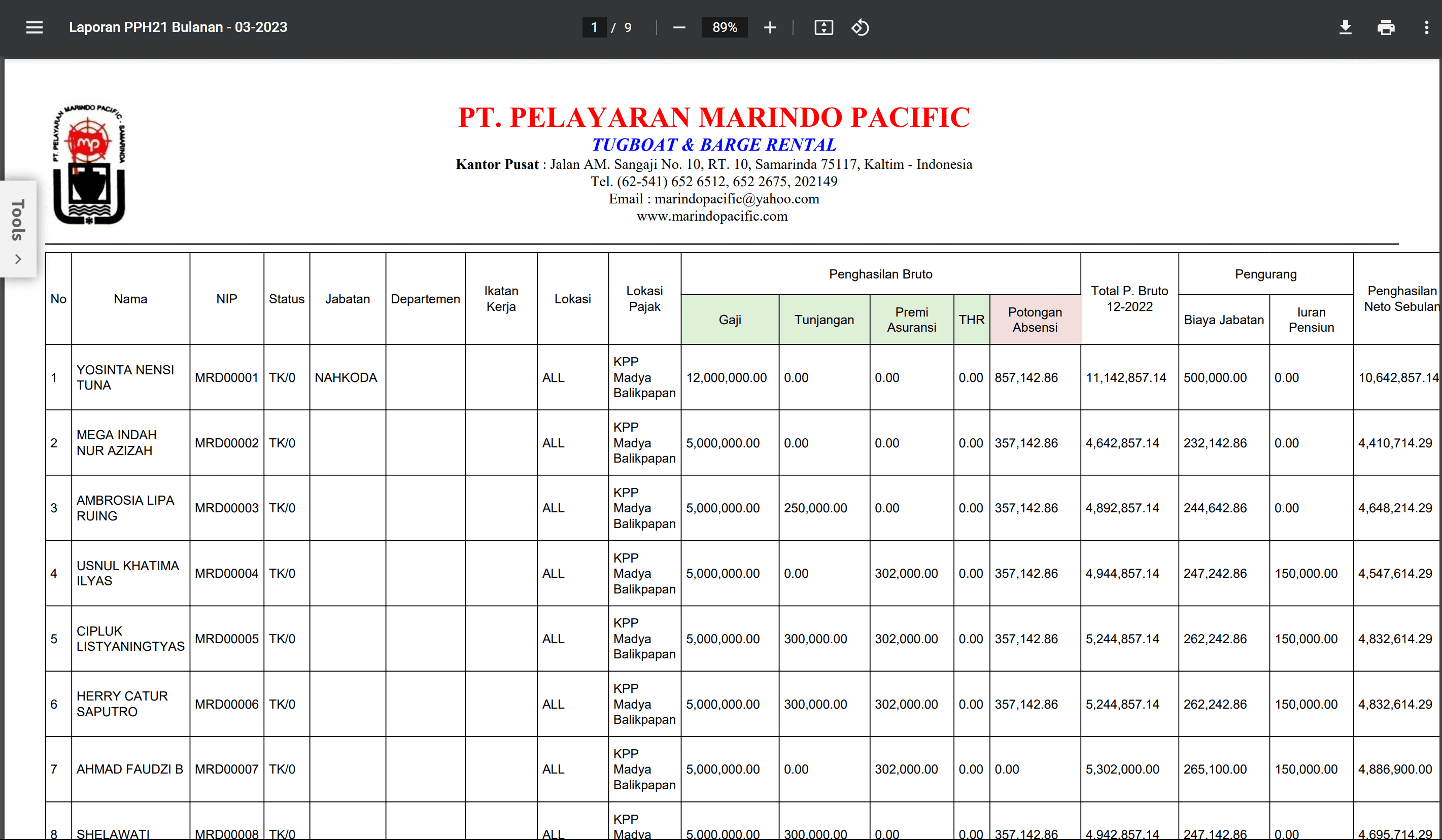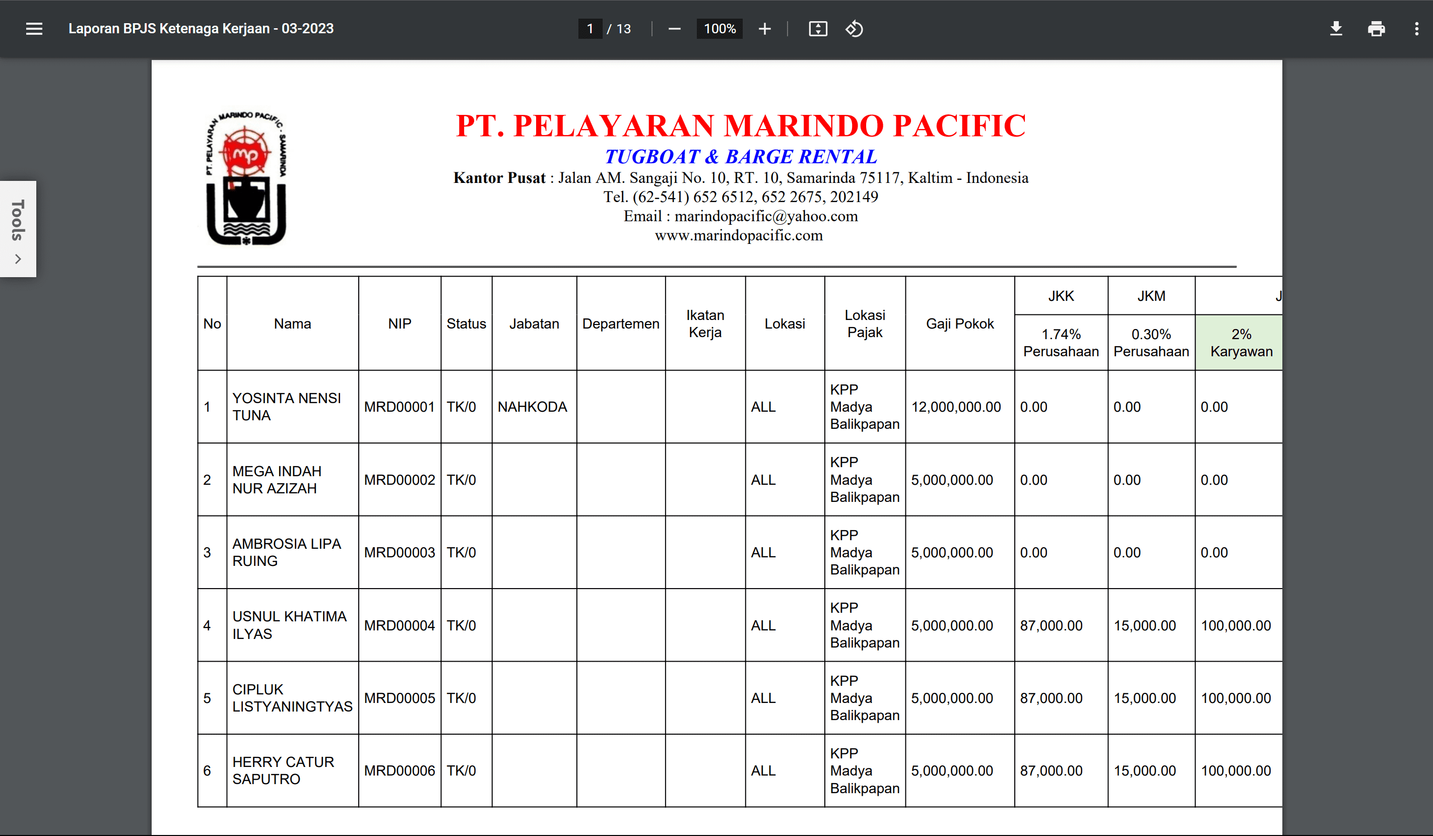 Modul gaji berisi data-data gaji karyawan yang terdapat di marindo :