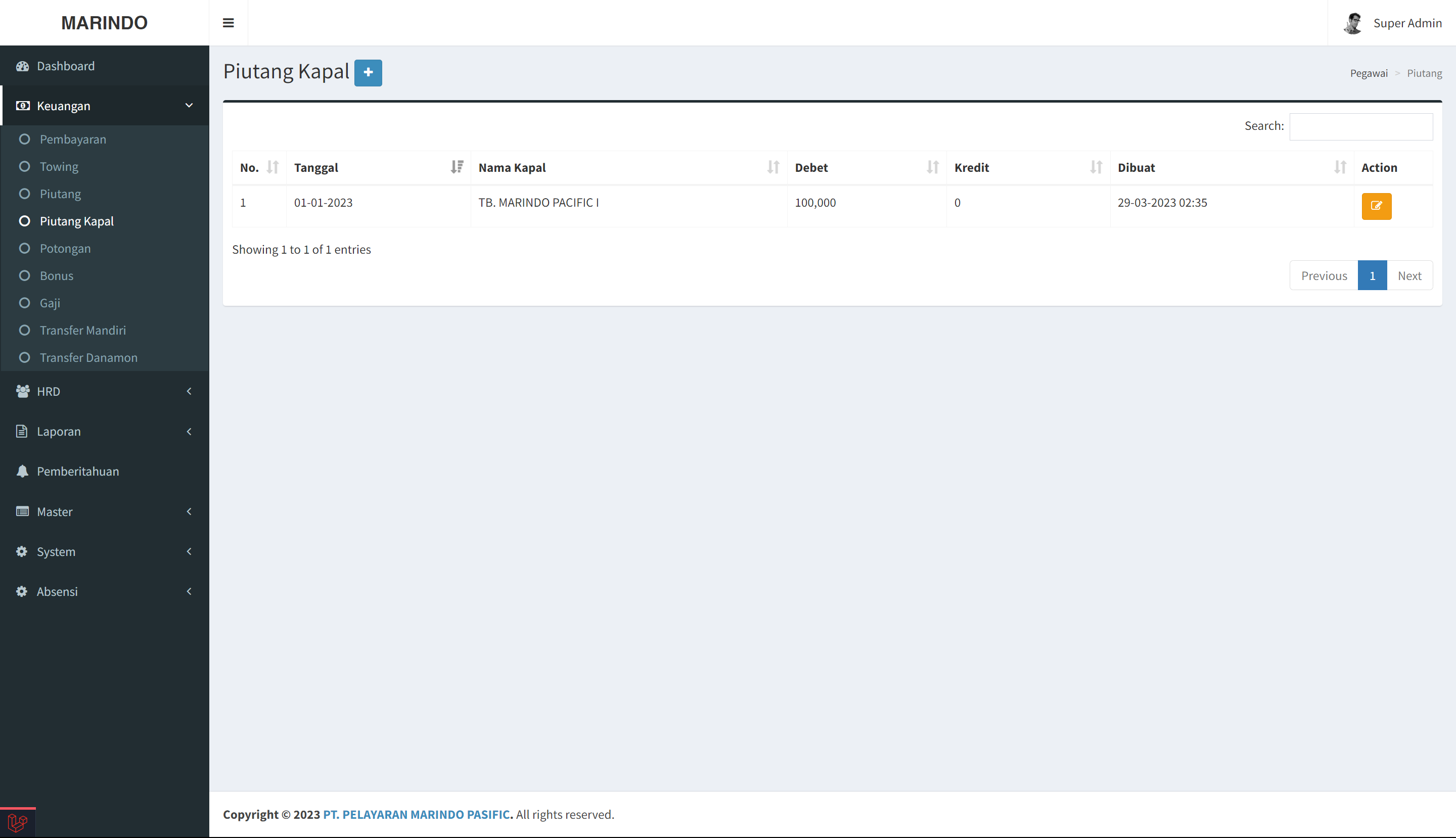 Modul piutang berisi data-data piutang kapal yang terdapat di marindo :