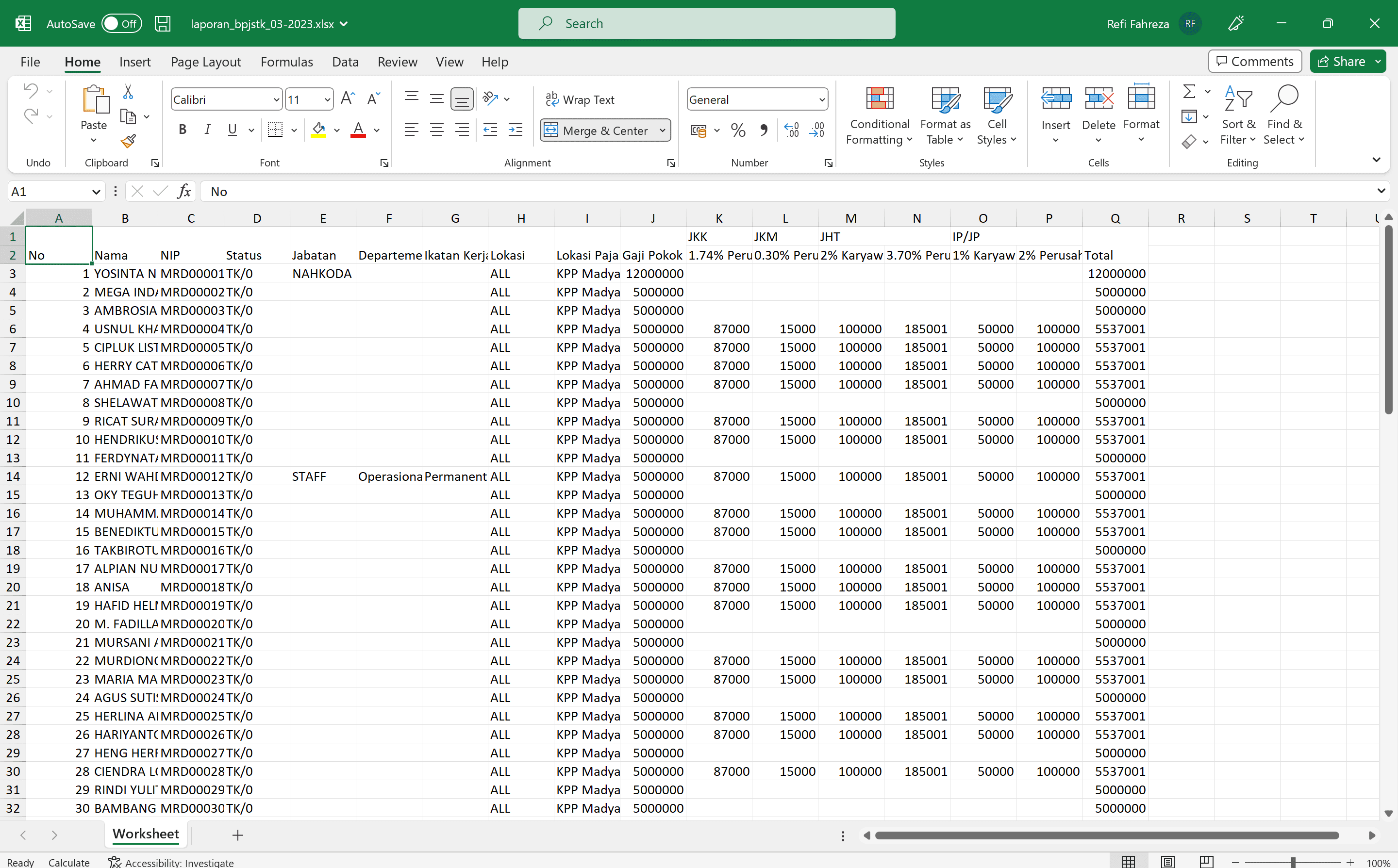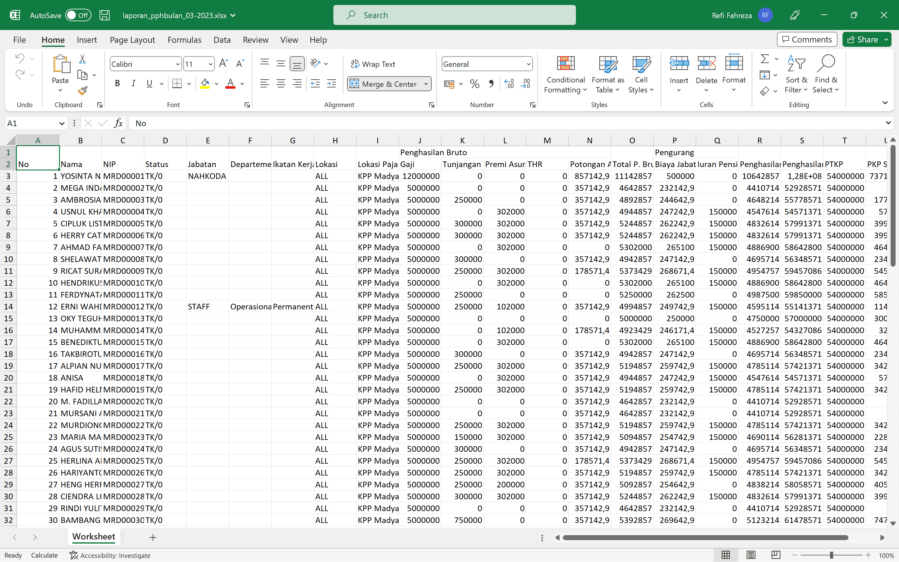 Pada halaman potongan menampilkan data No, NIP, Nama Lengkap, Tanggal, dan Nominal