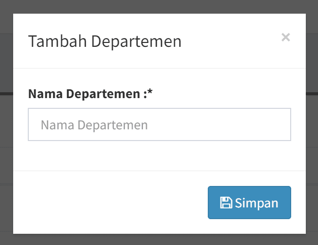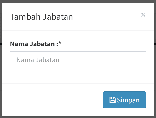 Pada form tambah jabatan silahkan memasukkan data Nama Jabatan dan tekan tombol Simpan