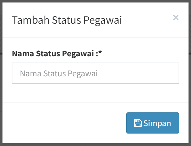 Pada form tambah status pegawai silahkan memasukkan data Nama Status Pegawai dan tekan tombol Simpan
